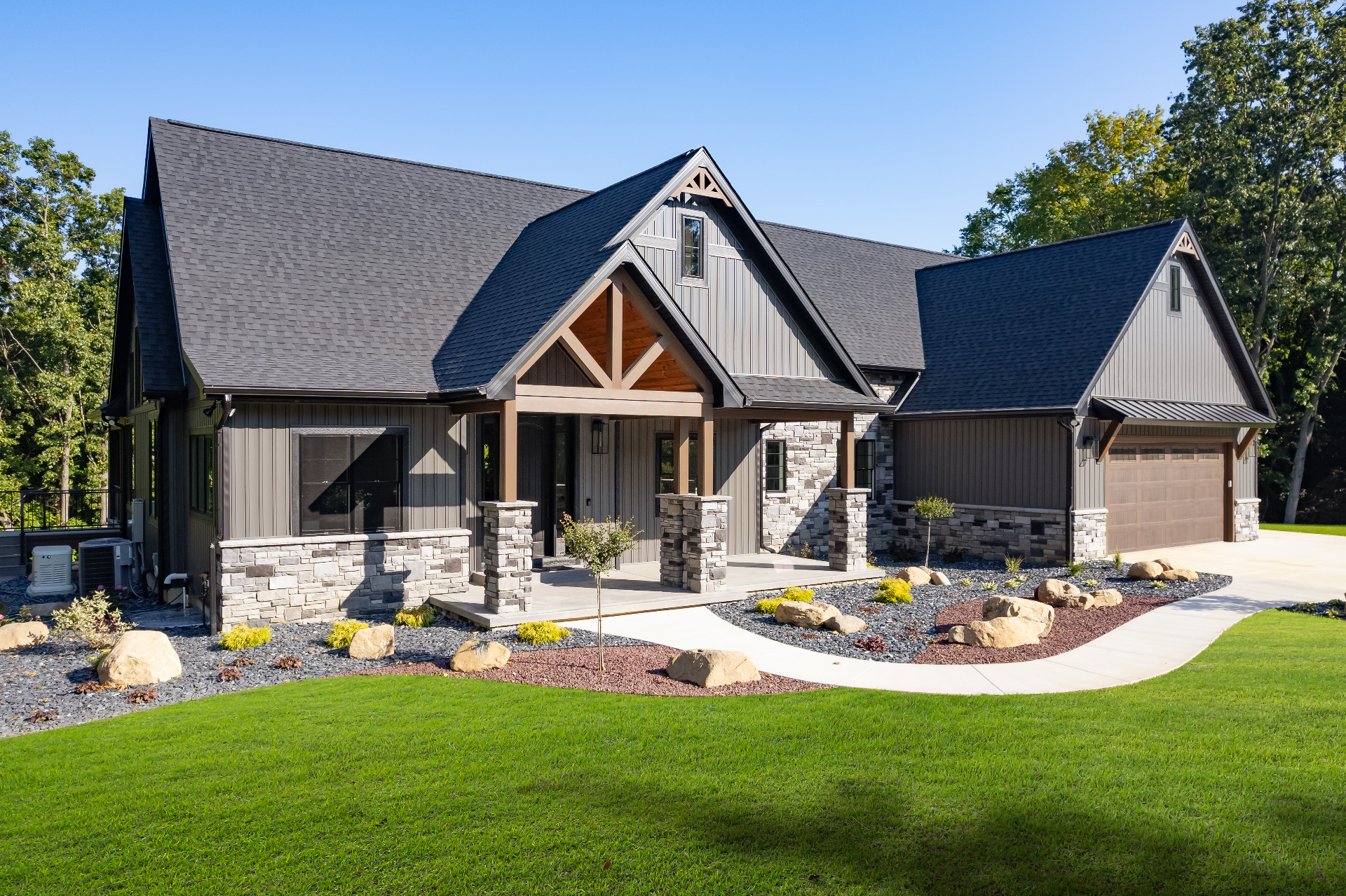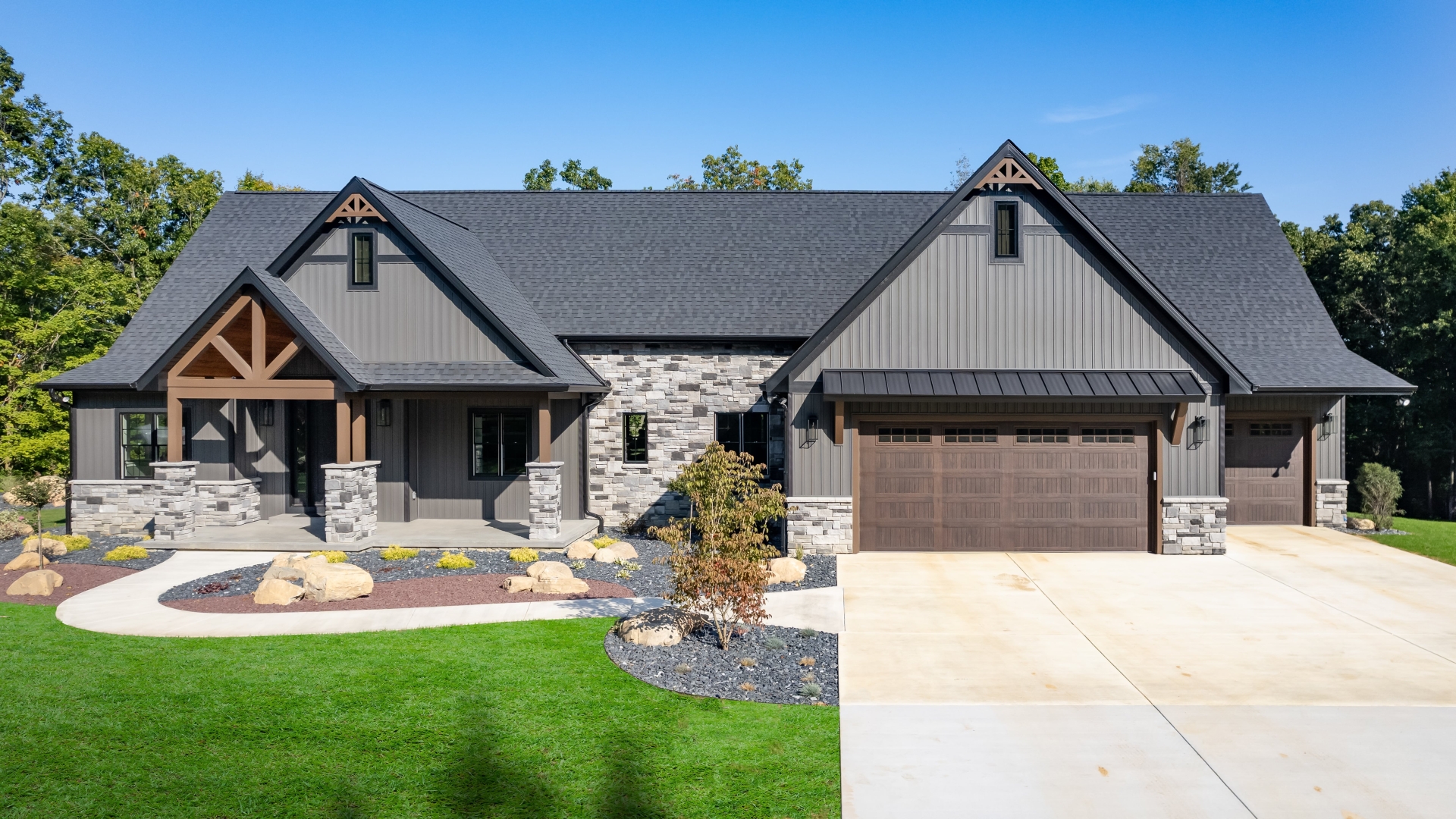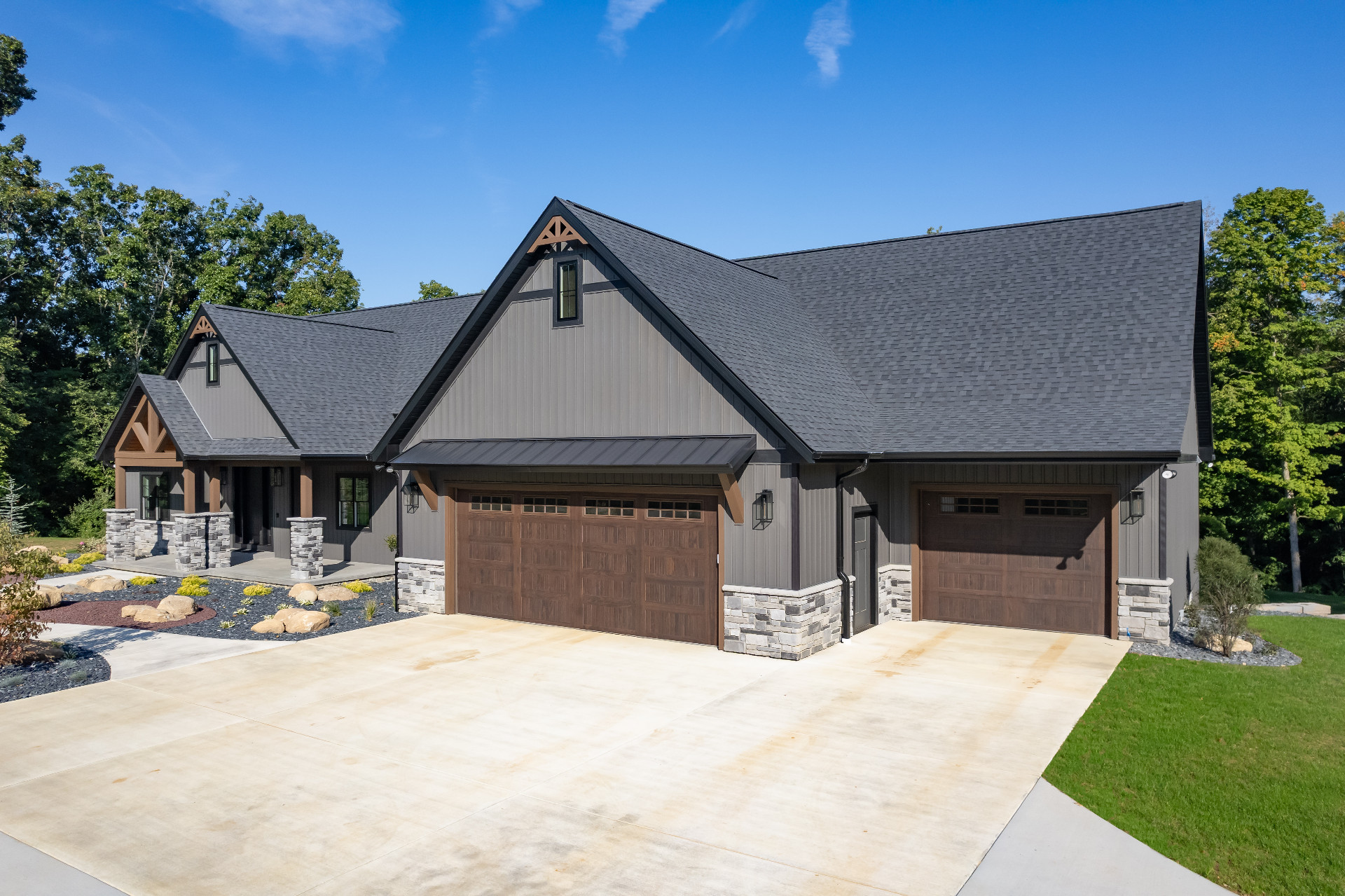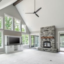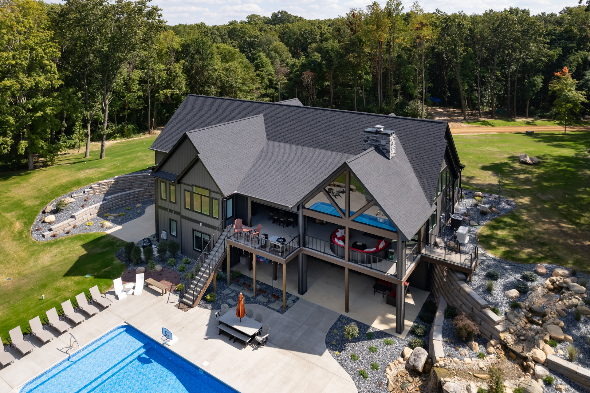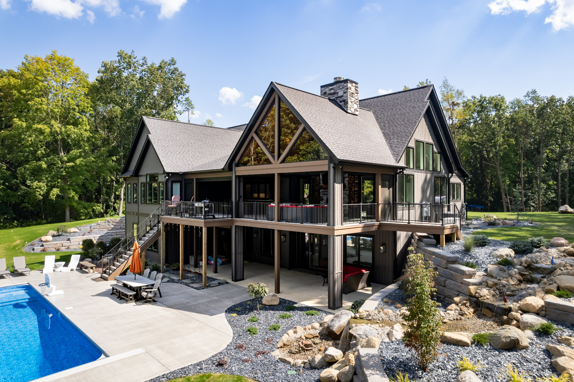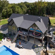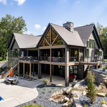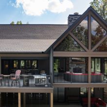 Exposed natural elements and modern finishes strike a balance of comfort and style, while vaulted ceilings and thoughtful details add to the home’s spacious, airy feel. Step outside to enjoy fresh forest air and a true connection to the outdoors, with plenty of room for gatherings under the trees.