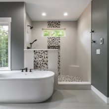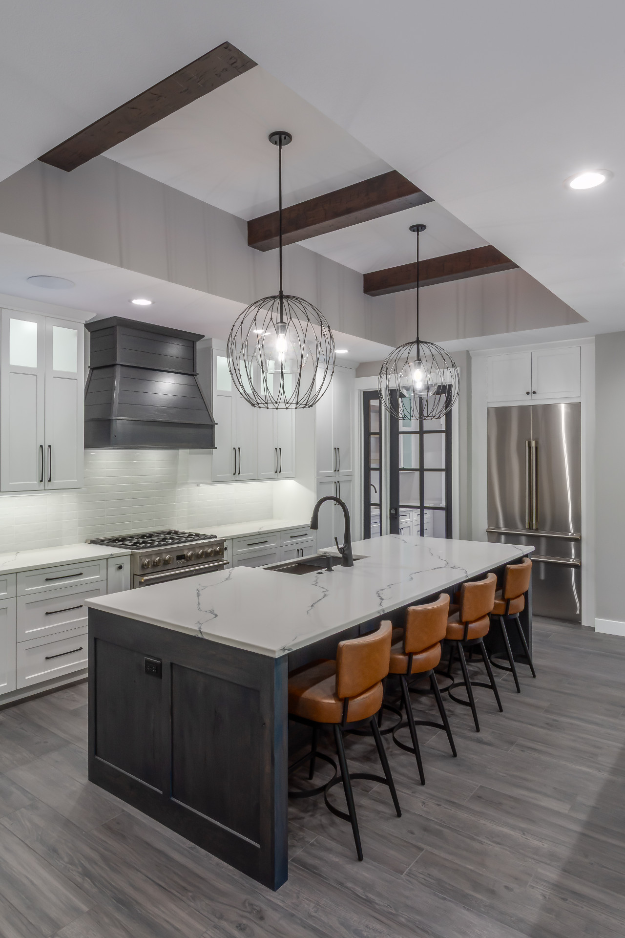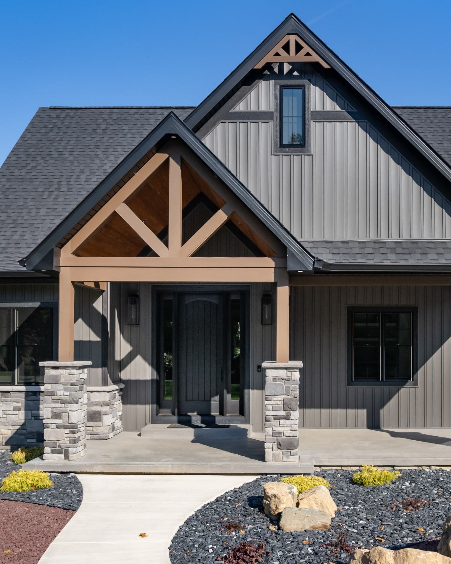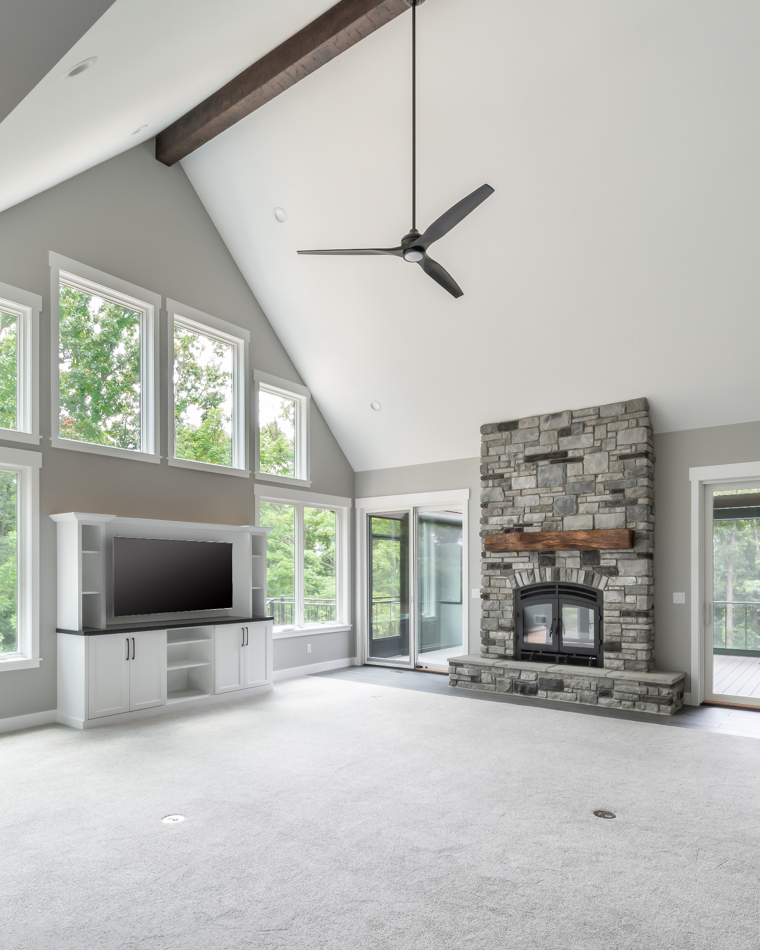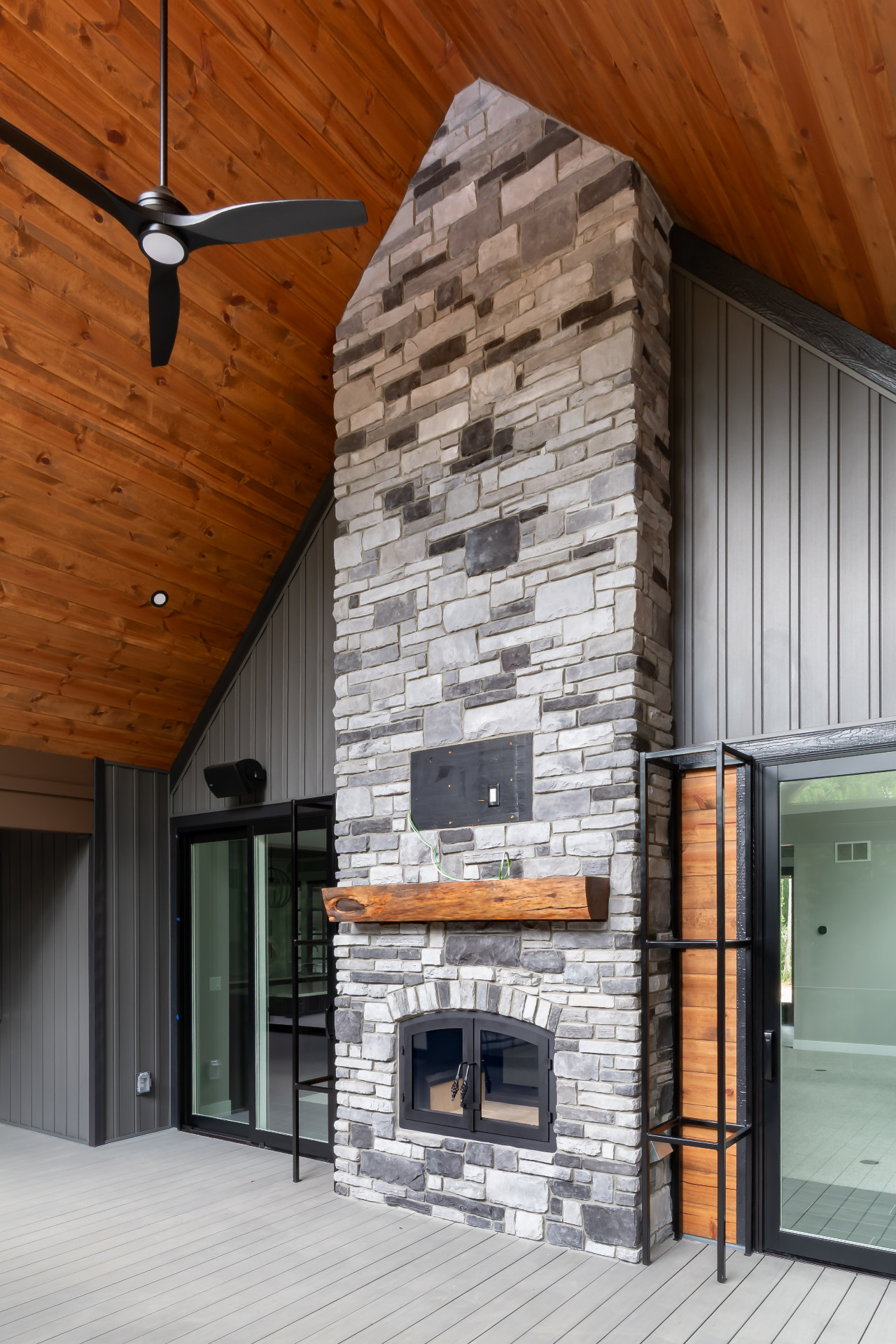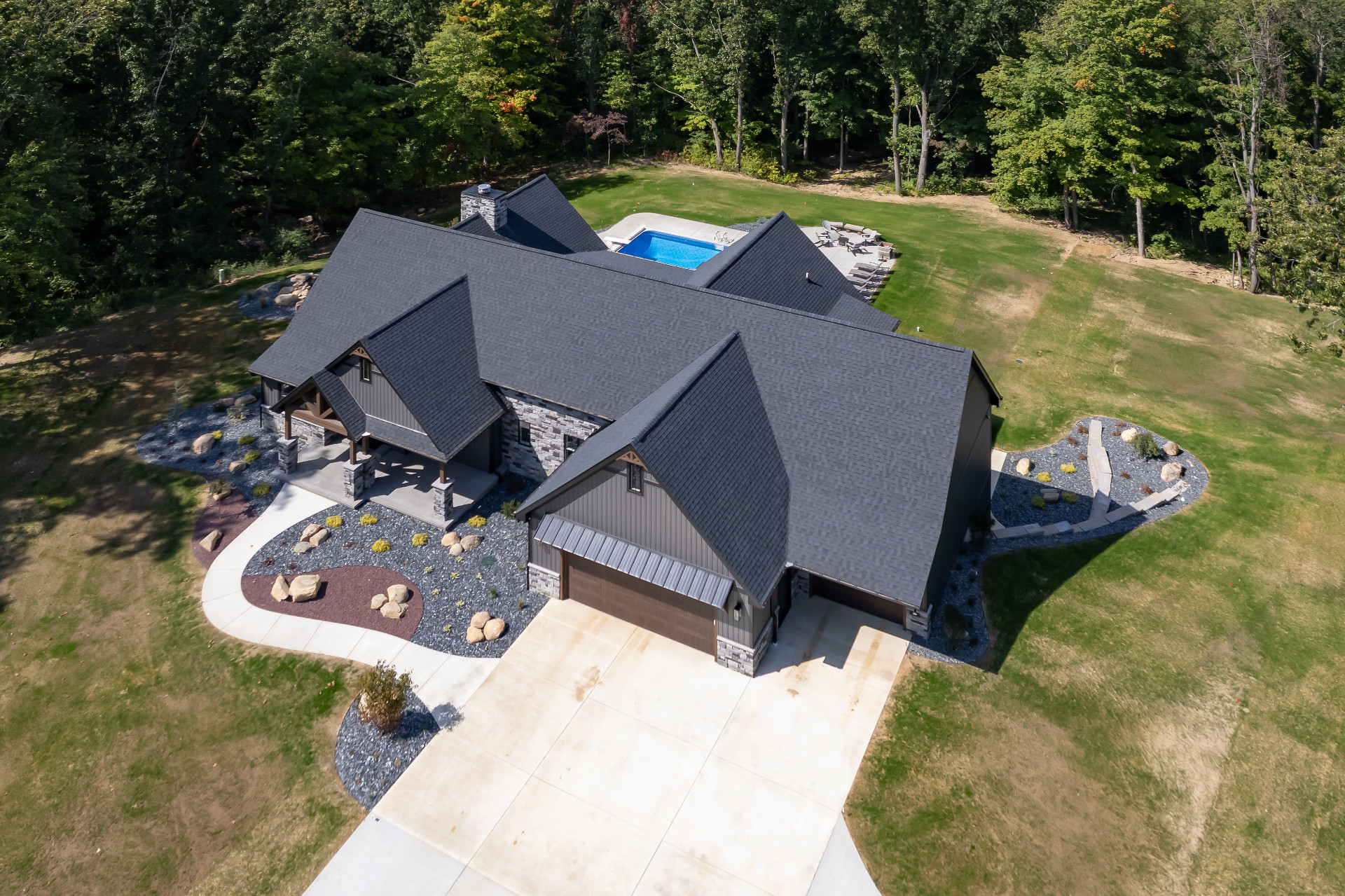 Exposed natural elements and modern finishes strike a balance of comfort and style, while vaulted ceilings and thoughtful details add to the home’s spacious, airy feel. Step outside to enjoy fresh forest air and a true connection to the outdoors, with plenty of room for gatherings under the trees.