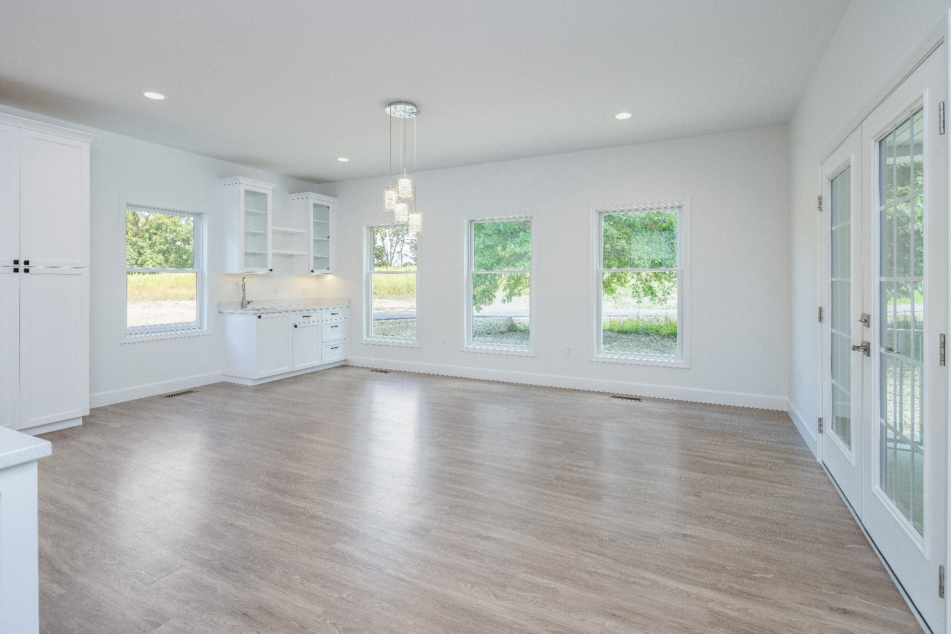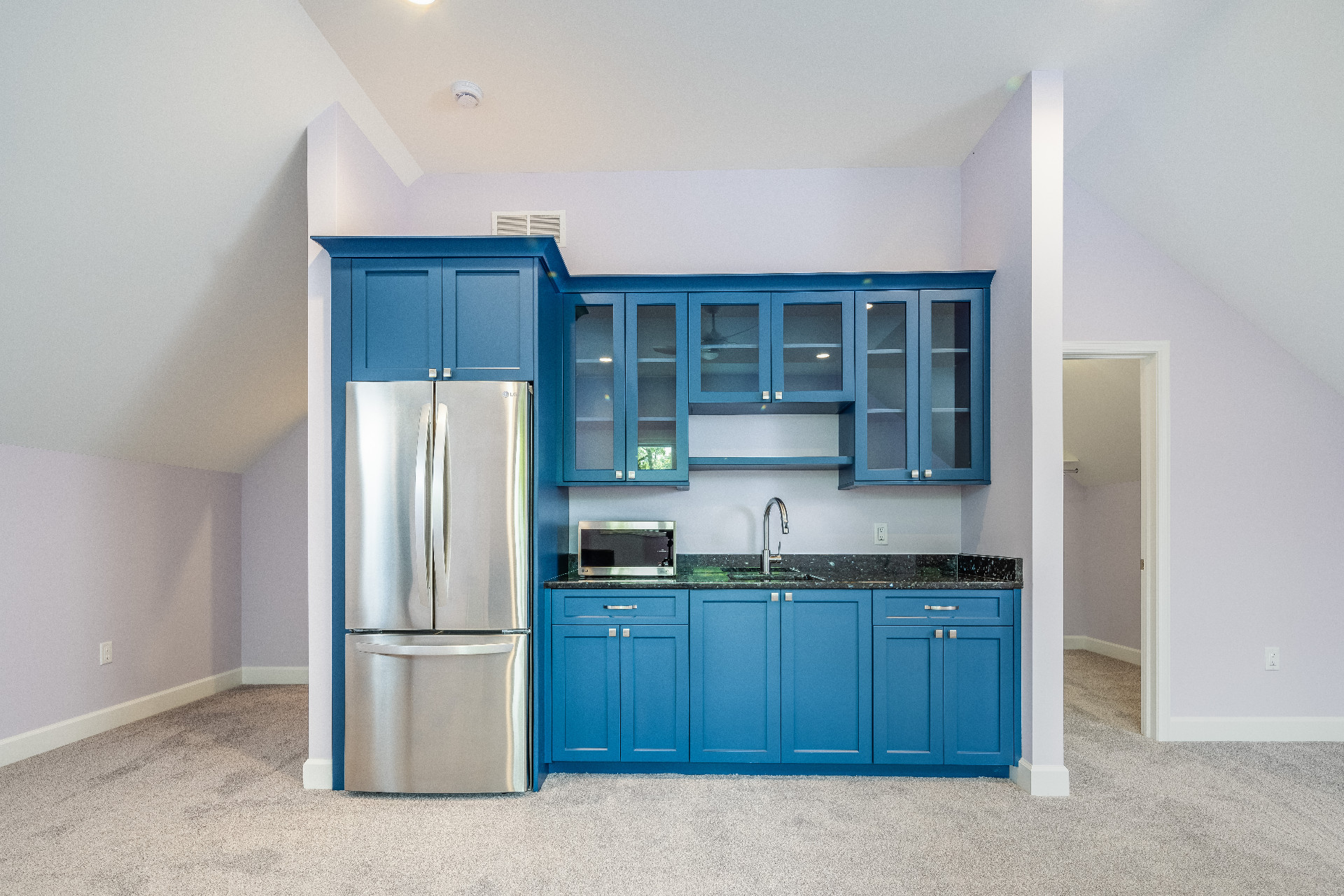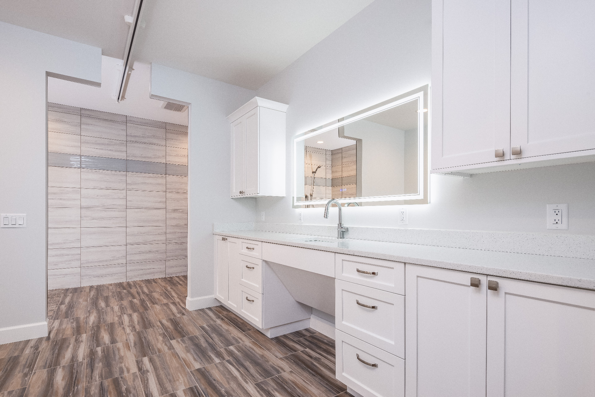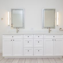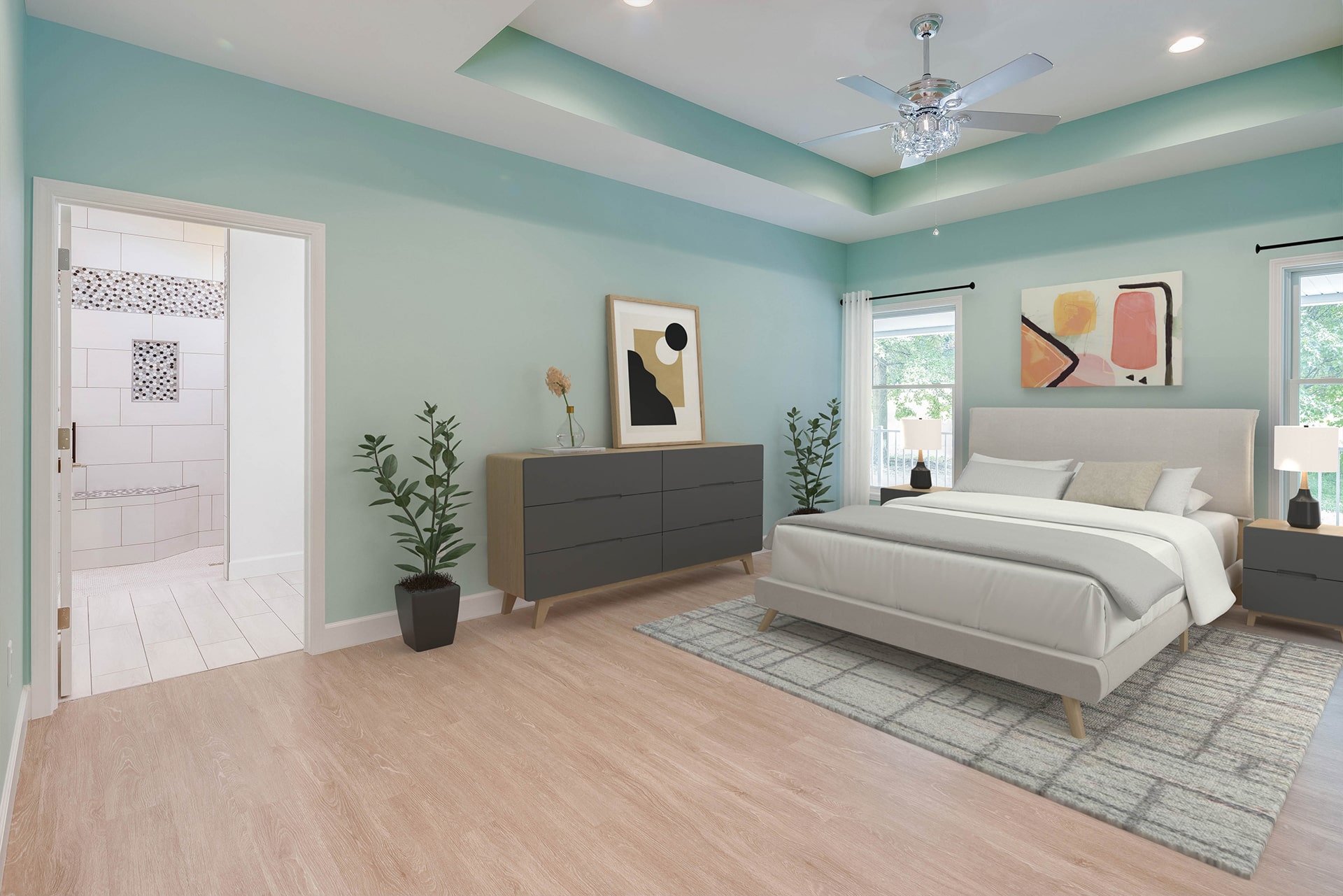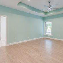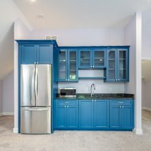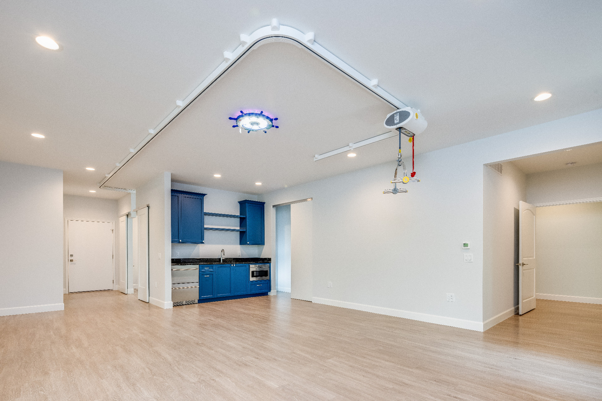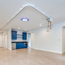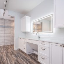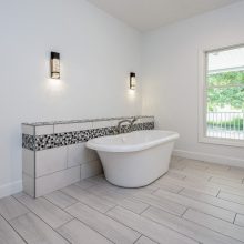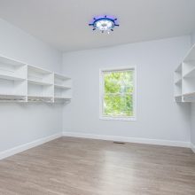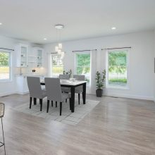 Designing an ADA-compliant home in the woods offers an opportunity to create a space that is both accessible and deeply connected to nature. This woodland retreat, built by Deloof Builders, features an open concept layout where the living room, dining area, and kitchen flow together with wide doorways and hallways to allow easy movement for wheelchair users. Smooth, non-reflective flooring such as hardwood, luxury vinyl planks, or tile ensures durability and comfort, while large windows with low, easy-to-reach handles bring natural light and views of the forest indoors. Bathrooms include a curb-less roll-in shower with a handheld showerhead, an ADA-approved soaking tub, and a toilet area with grab bars and generous clearance for wheelchair transfers, along with a vanity designed for roll-under access and touch-activated faucets for ease of use. Bedrooms provide sliding or barn-style closet doors with low handles, shelving and rods at multiple heights, and wide unobstructed pathways around the bed for easy navigation. Every detail of this design blends accessibility, safety, and comfort with elegance and a seamless connection to the natural surroundings, creating a home that is functional, inclusive, and beautiful.