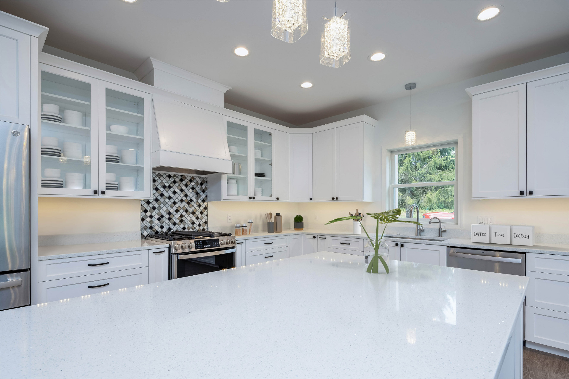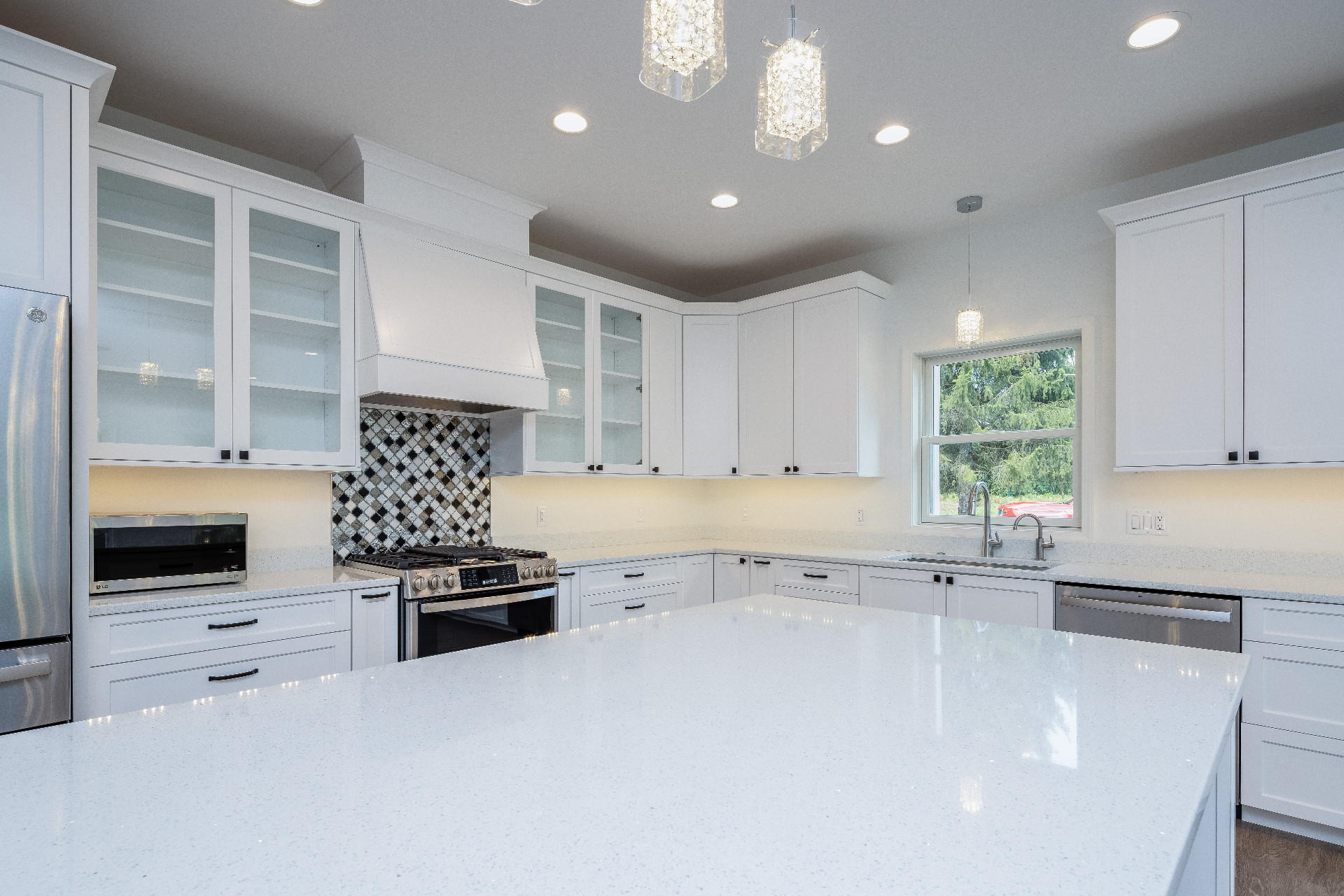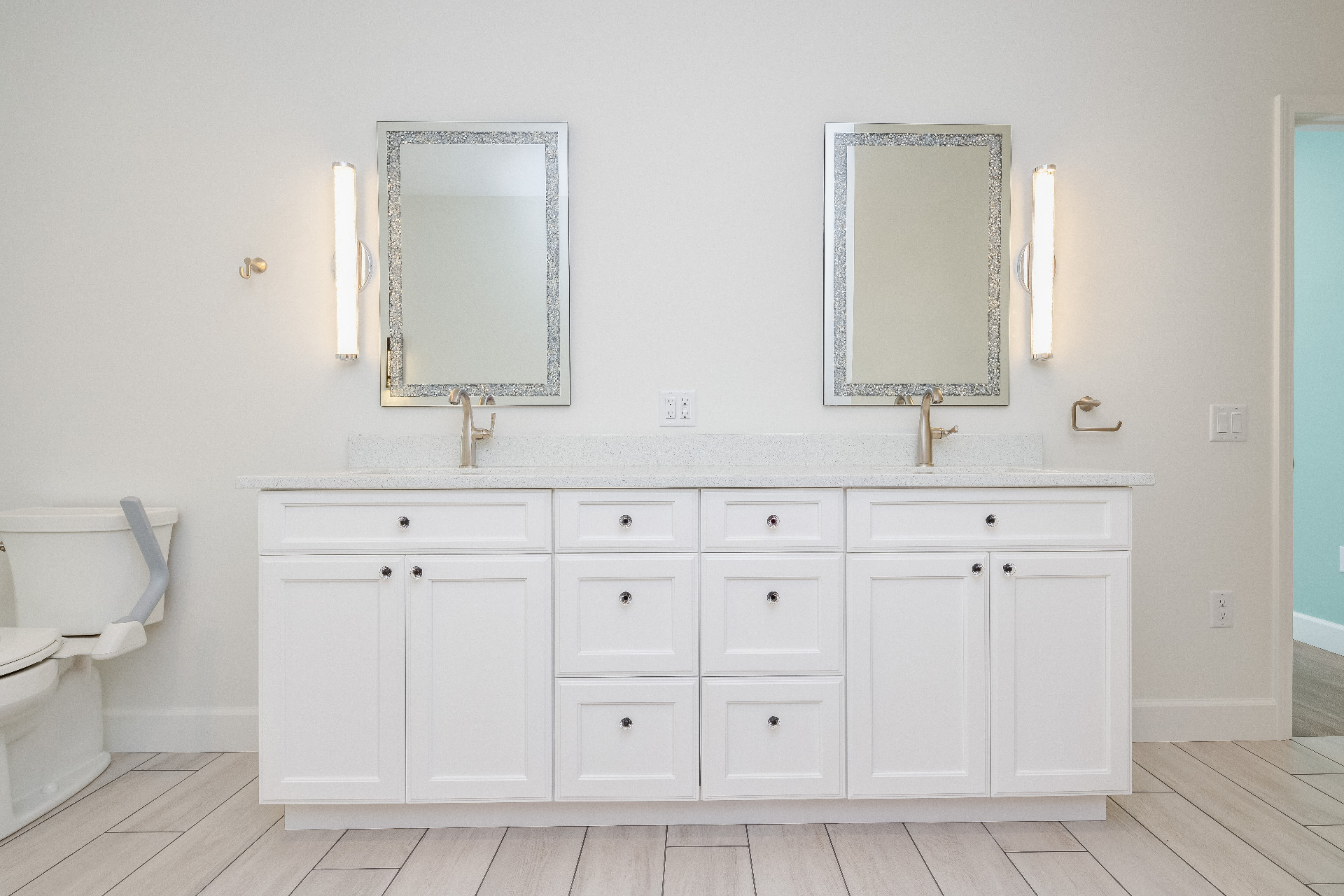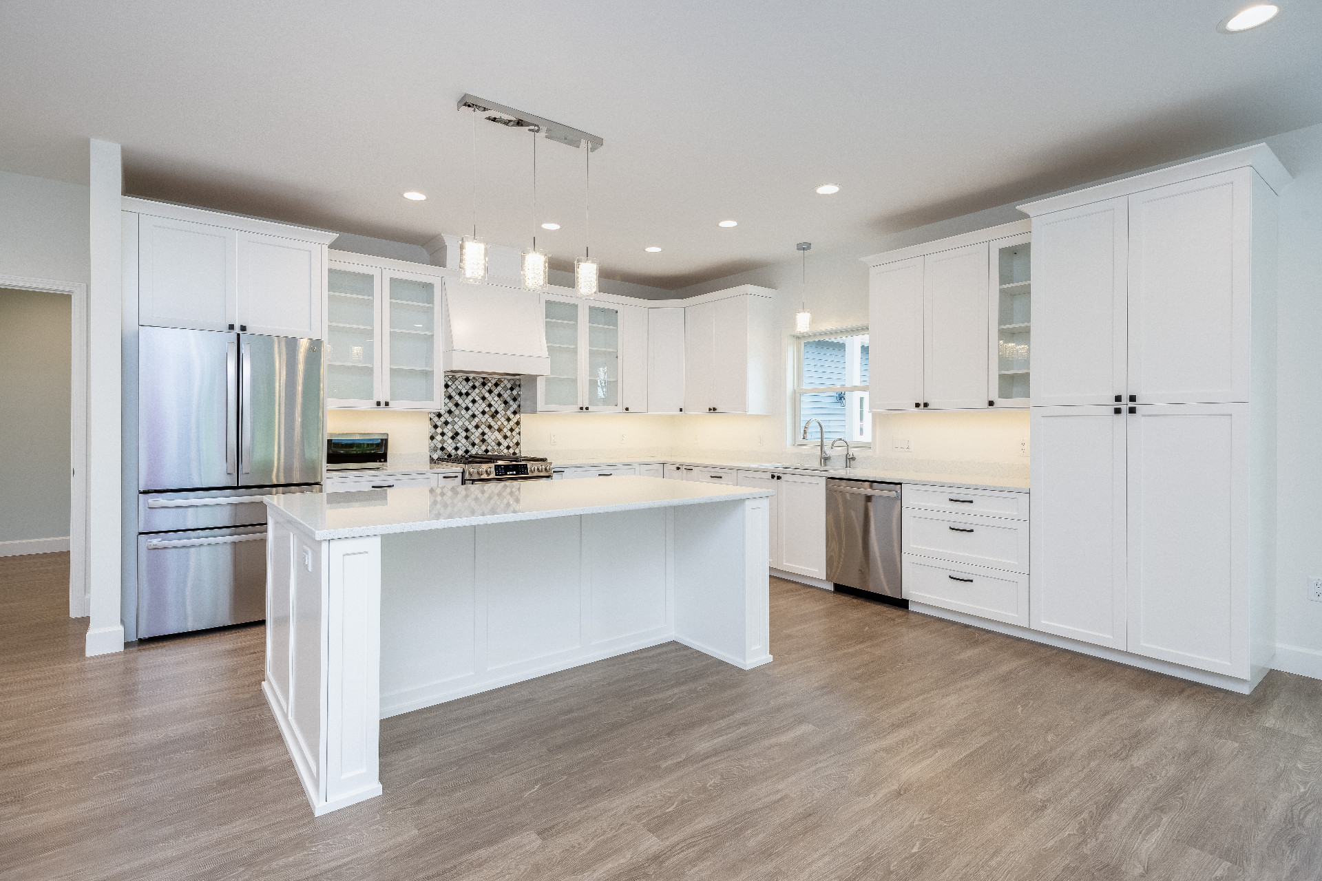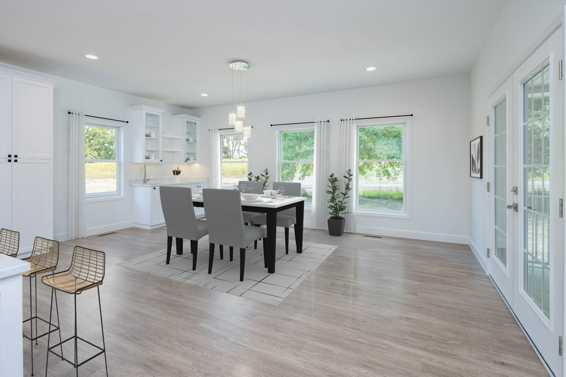 Designing an ADA-compliant home in the woods offers an opportunity to create a space that is both accessible and deeply connected to nature. This woodland retreat, built by Deloof Builders, features an open concept layout where the living room, dining area, and kitchen flow together with wide doorways and hallways to allow easy movement for wheelchair users. Smooth, non-reflective flooring such as hardwood, luxury vinyl planks, or tile ensures durability and comfort, while large windows with low, easy-to-reach handles bring natural light and views of the forest indoors. Bathrooms include a curb-less roll-in shower with a handheld showerhead, an ADA-approved soaking tub, and a toilet area with grab bars and generous clearance for wheelchair transfers, along with a vanity designed for roll-under access and touch-activated faucets for ease of use. Bedrooms provide sliding or barn-style closet doors with low handles, shelving and rods at multiple heights, and wide unobstructed pathways around the bed for easy navigation. Every detail of this design blends accessibility, safety, and comfort with elegance and a seamless connection to the natural surroundings, creating a home that is functional, inclusive, and beautiful.